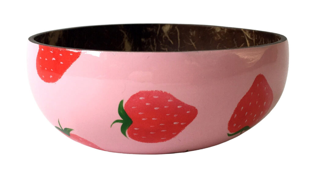 Apportez une note décorative fruitée à votre intérieur avec ce bol coco intérieur Fraises, une pièce charmante et artisanale idéale pour la décoration, tout en rappelant qu’elle n’est pas adaptée au contact alimentaire.